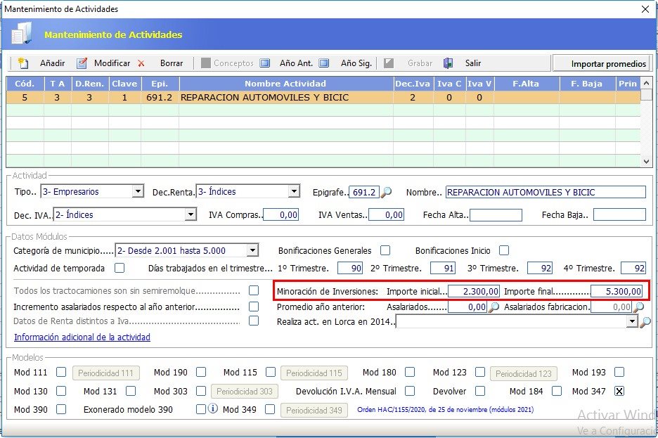 Módulos: ¿Cómo se indica la minoración por incentivos a la inversión?