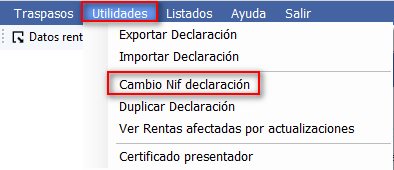 En la pantalla inicial pulsando en Utilidades> Cambio Nif declaración.